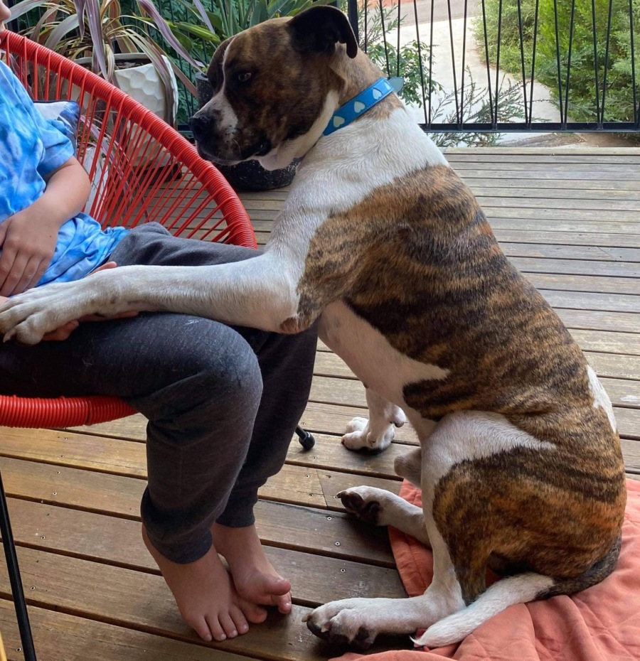 "Merrick" the massive boxer cross is a big, softy with a big heart. A little timid but would love a family with kids.