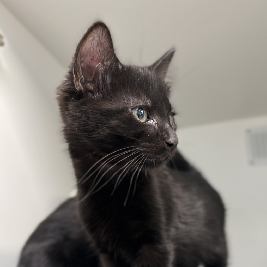 I am a young kitten with bright eyes and a gentle bounce, learning something new every day. I am up to date with my vaccinations, microchipped and desexed. Once I join your family I will probably need one or two more vet visits to finish my routine care. I will look to you for steady guidance as I settle in, find my favourite sleeping spot and learn the sounds of my new home. I enjoy short bursts of play, cosy beds and quiet reassurance. If you are patient and ready to help me grow, I will become a wonderful little companion.