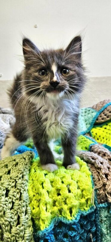 Hi, I'm Jerry, a male Domestic Medium Hair kitten, and I’m about 2 months old. I’m a curious little explorer who loves chasing feather toys, zoomies around the living room, and curling up for warm cuddles after a nap. I’m a big purrer and I’ll happily nuzzle into your lap when you reach for me. I get along well with friendly people and other pets and I’m learning to use my paws gently during play. I’m hoping for a home that’s patient and full of enrichment—lots of kitten-safe toys, cozy sunny spots, and gentle guidance as I grow. I promise daily smiles, soft purrs, and endless affection for the right family. If you’re ready for a loyal little sidekick who will grow into a brave, loving cat, I’d love to meet you. I’m Jerry, your potential forever friend, ready to start our adventure together.