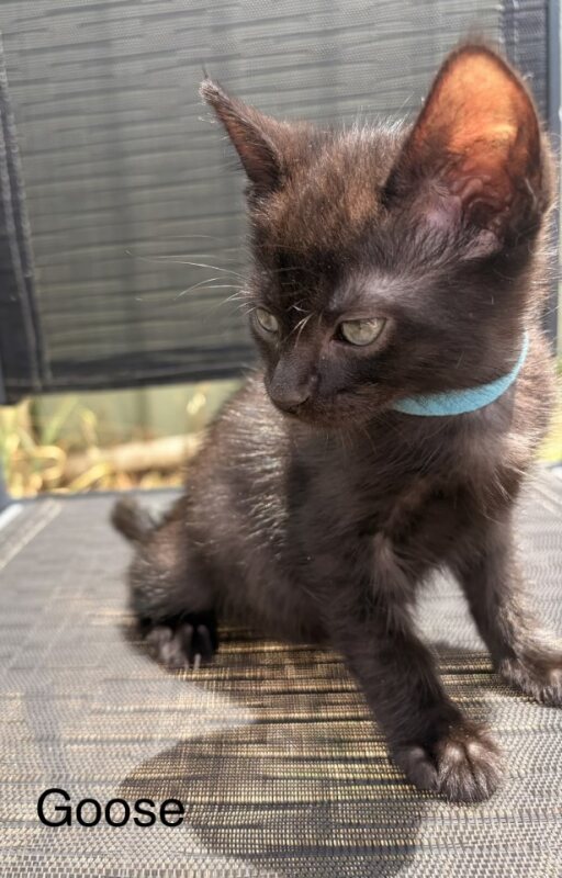 Hi, I’m Goose. I’m a male Domestic Short Hair kitten, 2 months old. My energy is average—I love curious exploration, gentle play, and snoozing in sunbeams. I purr when you cuddle me and I’ll happily melt into your lap. I’m good with kids; no known issues around children. I enjoy feather wands, cardboard boxes, and chasing a wiggly toy. I’m litter-trained and I know how to use a scratching post. I’m looking for a patient, loving home where I can grow up beside you, get regular meals, and share lots of cuddles. If you want a hopeful, affectionate little buddy to brighten your days, I’m Goose and I’d love to meet you.