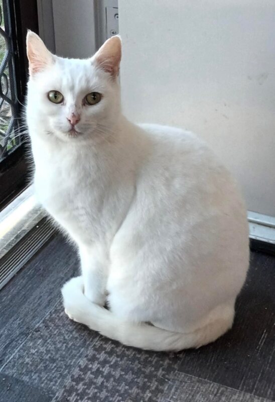 This snowy little sweetheart is Kimba, a one-year-old girl with the softest fur, the gentlest soul, and a PhD in sitting politely like a perfect loaf of bread right at your feet (especially if you happen to be near the fridge). Kimba didn't have the best start - she was abandoned in a carpark with her two babies. But instead of letting that break her, she stayed gentle, loving and surprisingly forgiving towards humans (especially the ones who come bearing snacks). 💙 What's She Like? Quiet? ✔️ Polite? ✔️ Always down for snack time? ✔️✔️✔️ She's the perfect housemate: no loud parties, no drama, just a sweet little companion who'll silently judge your cooking and keep your feet toasty warm while you watch TV. 🐱 No Other Cats, Please! Kimba is all about people. Other cats? Hard pass. She's waited long enough for her own humans - she'd prefer not to share them, thank you very much. If you've got room in your heart (and on your kitchen floor) for this fluffy white loaf, send us a message. Kimba promises to supervise your snack choices and reward you with all the gentle love you could ever want