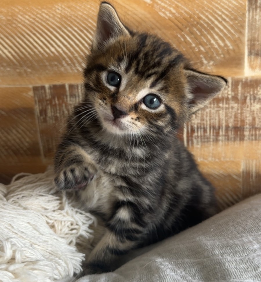Milfordโs story began on an extremely stormy day, when he and his four siblings were found drenched and huddled behind a shed. A loyal elderly German Shepherd alerted his owner to the tiny babies and with no mumma cat in sight, the babies were quickly brought into care, where warmth, safety, and love were waiting.