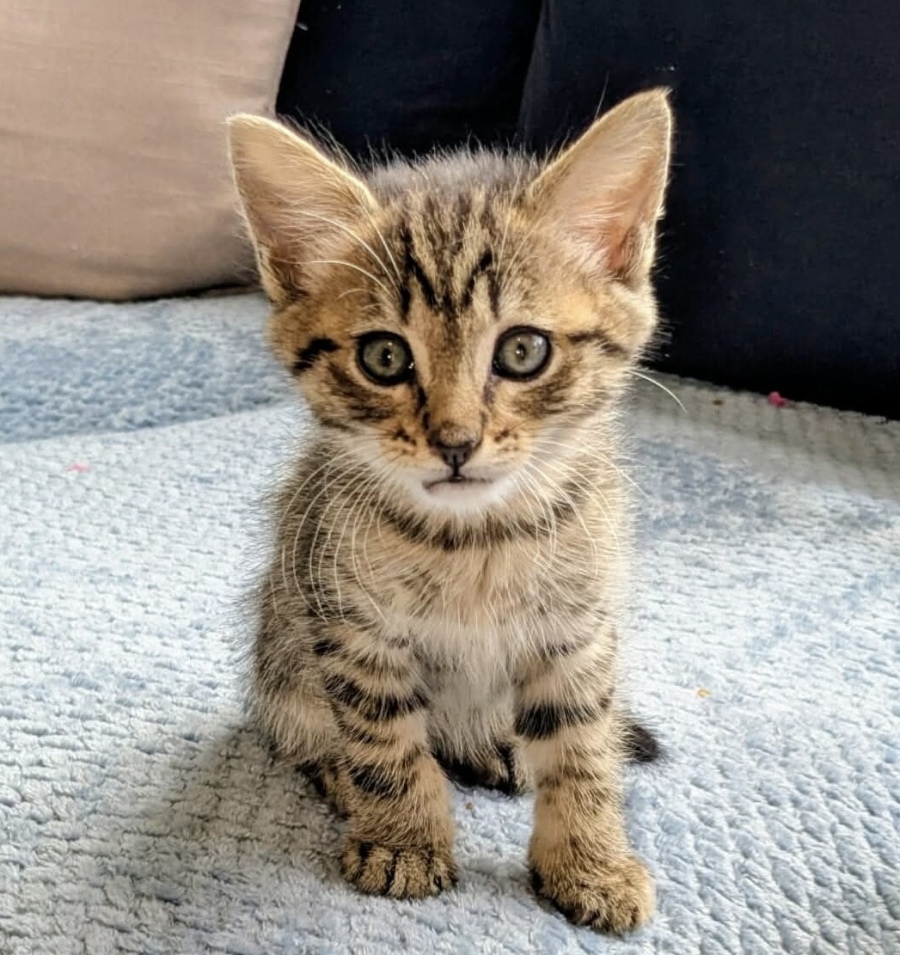 Bertie must go to a home with an existing cat or be adopted with one of his equally as adorable siblings Bobby, Daisy or Bolt. Kittens do much better with a little friend. It is worth researching "solo kitten syndrome" to learn why.