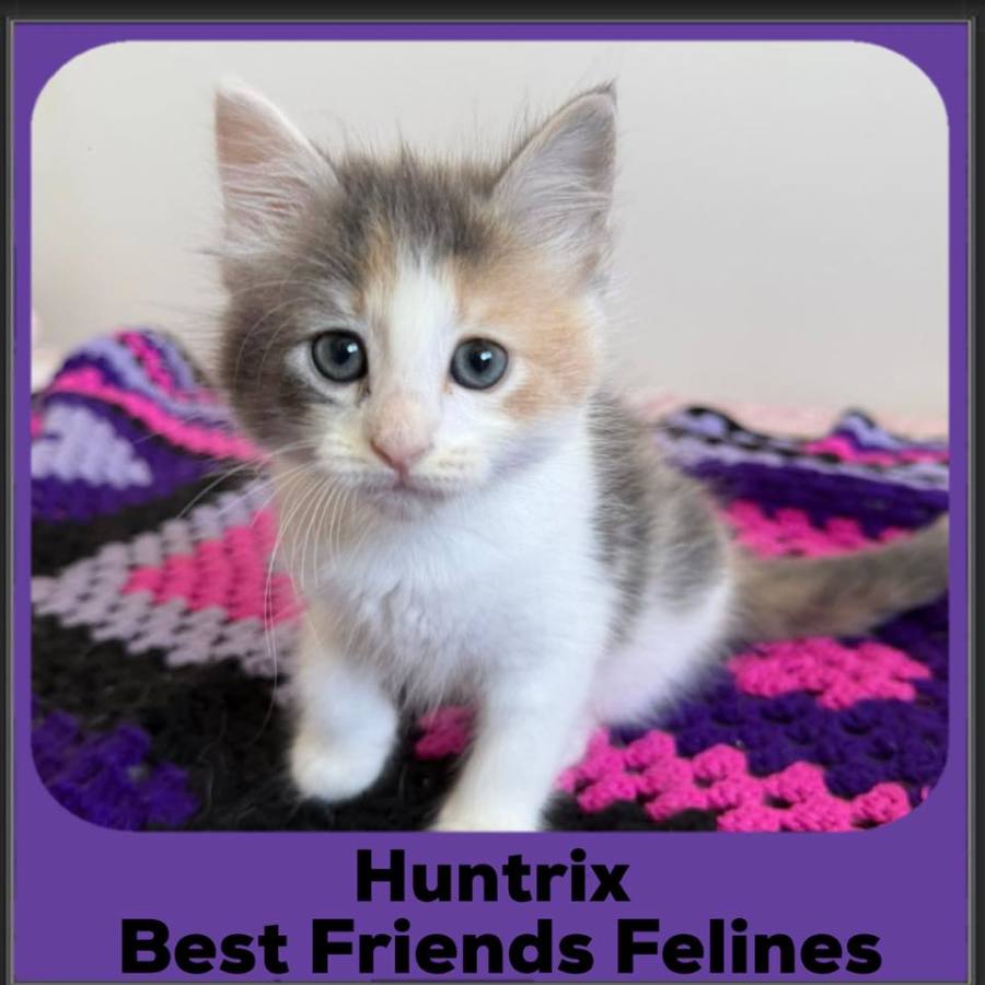 Huntrix is a loyal, loving little tortoiseshell kitten who forms deep bonds with the people around her. She’s the first to trot over for pats, cuddles, or a warm lap, and she always makes sure her humans know just how special they are.