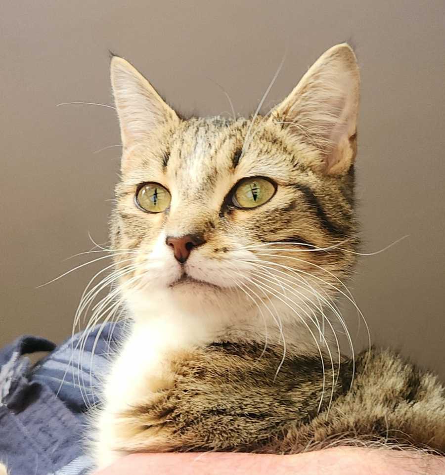 Though small in stature, Rosie's personality is anything but. Her affectionate nature makes her the perfect companion for cozy evenings at home. Whether she's enjoying a sunbeam by the window or nestled beside you on the couch, Rosie's presence brings warmth and happiness. Her curious gaze and soft purrs are a testament to her readiness to form a loving bond with a new family.