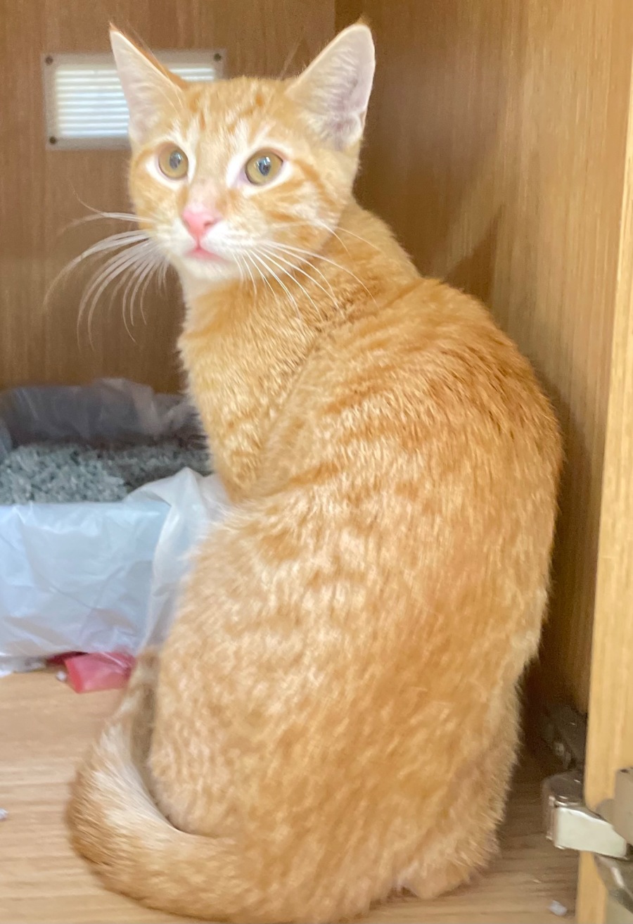 I am a Domestic Shorthaired cat with a gorgeous orange coat. A little white around my whiskers otherwise I’m a very ginger boy!