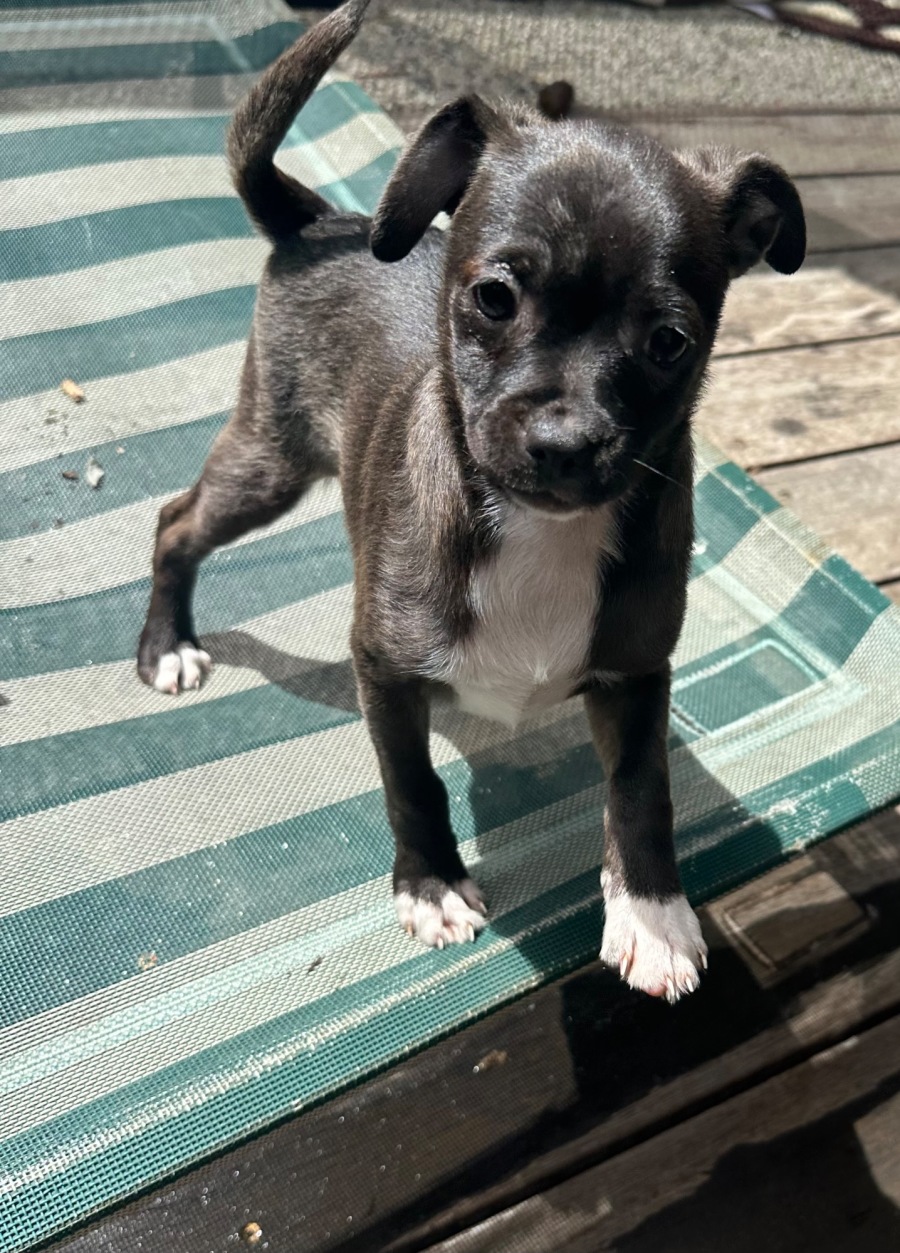 Carol is a 8 wk pug x Jack Russell brown and white - she's come to us from breeder - part of an accidental litter .
