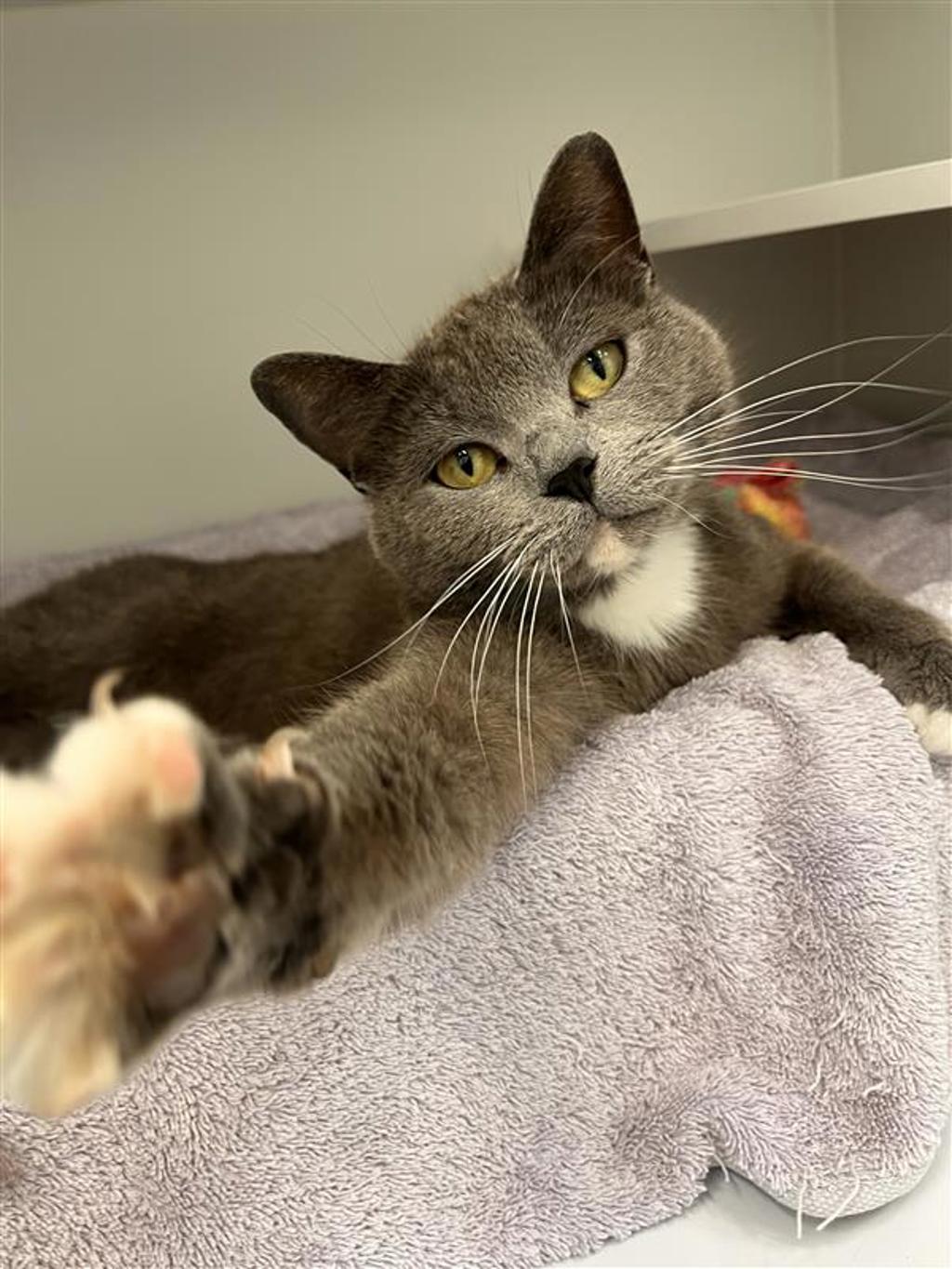 If you're a homebody who loves constant company, Cleo is absolutely your girl. This four-year-old British Shorthair is a certified smooch monster who thinks every human is her new best friend.