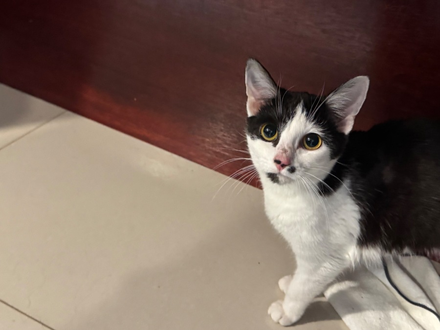This sweet cat is not only affectionate but is also great with children, making Spot an ideal addition to a family home. Their gentle and friendly demeanour ensures they get along well with other cats, thriving in a multi-pet household. Spot has an adventurous side and loves to explore both indoors and outdoors, discovering new nooks and crannies to satisfy their curiosity.