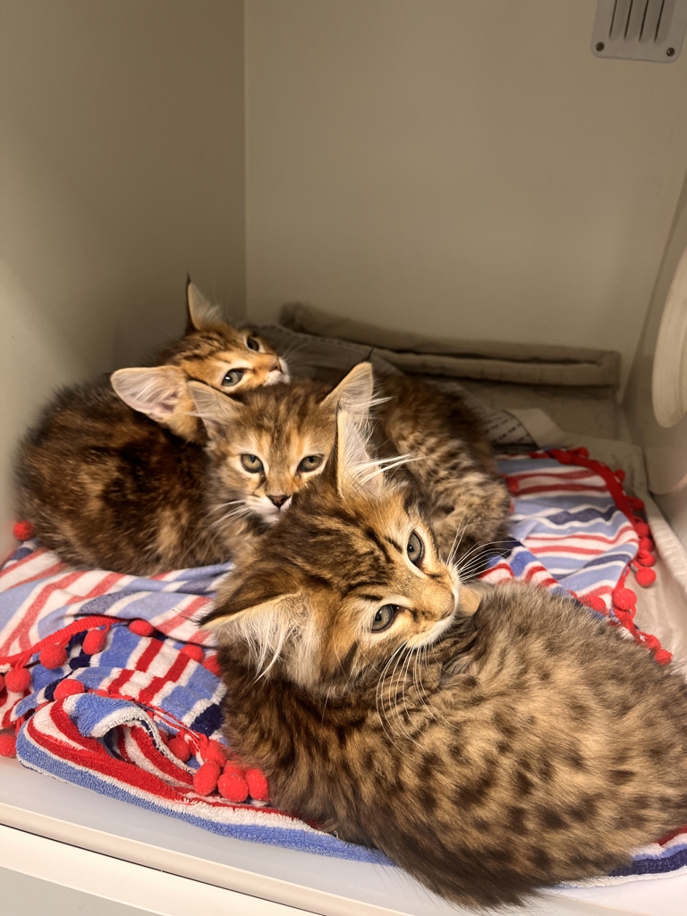We're a bunch of adorable kittens aged from 8 weeks and up, each with our own developing personalities. Some of us are bold and playful, some snuggly, and some a little shy-but all of us love toys, especially anything that rolls or jingles!