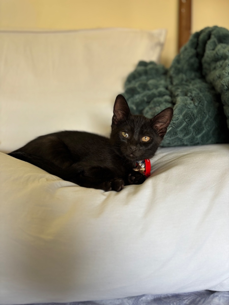 Meet Basquiat, a spirited and cheeky feline with enough energy to light up your household. Named after the famous artist, this clever cat has a larger-than-life personality and a penchant for adventure. Basquiat exudes confidence and loves nothing more than turning an ordinary day into a playful escapade.