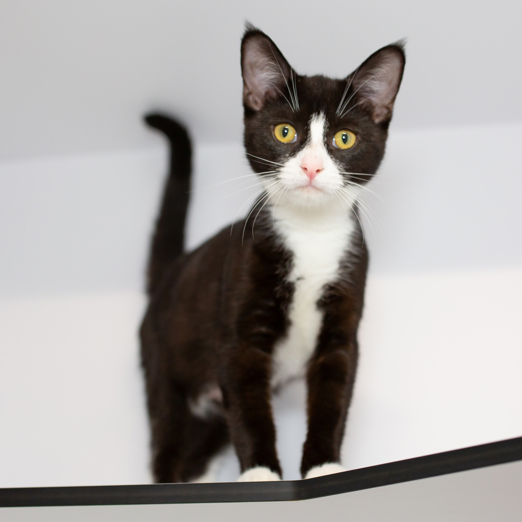 Lillian is a young black-and-white beauty with a calm, gentle nature and a heart full of sweetness. She's an easygoing, affectionate girl who enjoys quiet company, soft pets, and simply being near her people.
