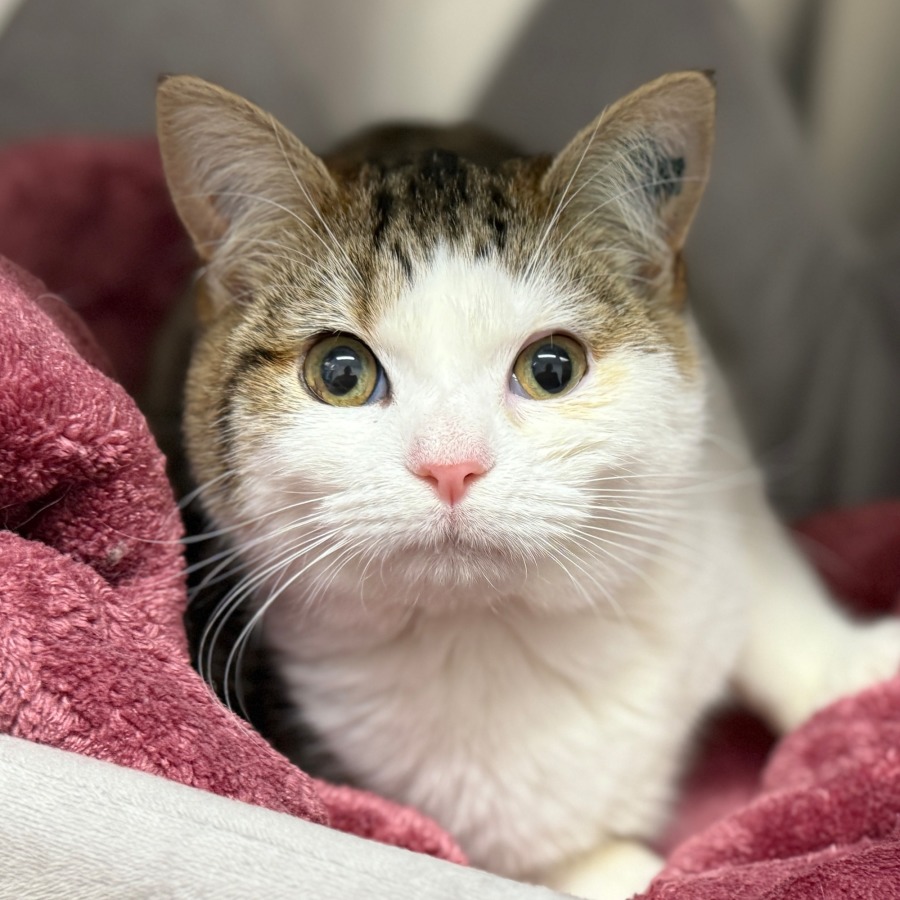 Zina is a nervous, sensitive soul who is still learning that people can be safe. She often hides at first and prefers calm environments, but with patience she begins to show soft, subtle signs of affection. She has a sweet temperament and wants to trust, she simply needs time and consistency.