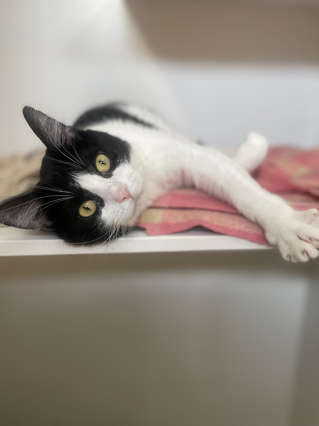 I'm a smoochie kind of guy, happy to sit close, purr, and enjoy gentle pats. I'm not loud or demanding; I prefer calm moments, snuggles, and the occasional playful interaction when I'm feeling confident.