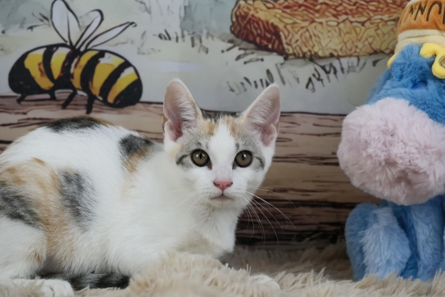 Casey is a sweet, gentle little tortie tabby and white girl with a soft nature that’s easy to fall in love with. She may be a bit timid when she first meets new people, but once she feels safe, her true personality shines through — affectionate, curious, and quietly confident. She’s the kind of kitten who blossoms beautifully with a patient, loving family.