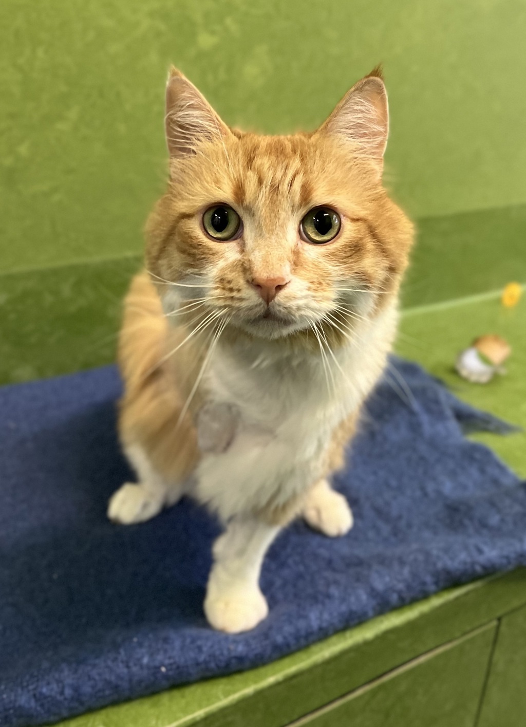 Meet Pumpkin! He's a three-legged sweetheart who proves that charm doesn't depend on perfect symmetry. He's friendly in a warm way and loves nothing more than settling beside you for quiet company. Pumpkin must stay indoors, where he feels safest and happiest watching the world from a cozy window perch. Pumpkin may have one fewer limb, but he has endless love, unmatched enthusiasm, and legendary napping skills. If you're looking for a loyal, soothing presence with a heart full of love, come and meet Pumpkin!