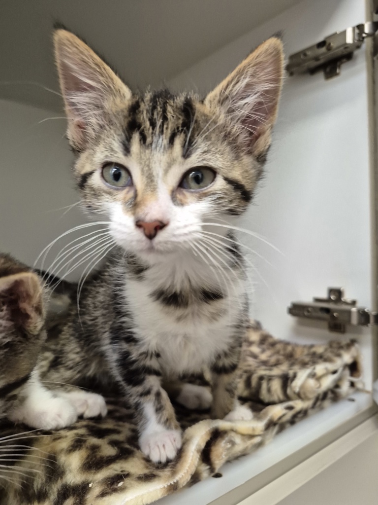 Meet Brittany, a tiny girl with a huge personality! At 12 weeks old, she may be small in size, but don't let that fool you - this fearless feline is all sass, spark, and surprising strength.