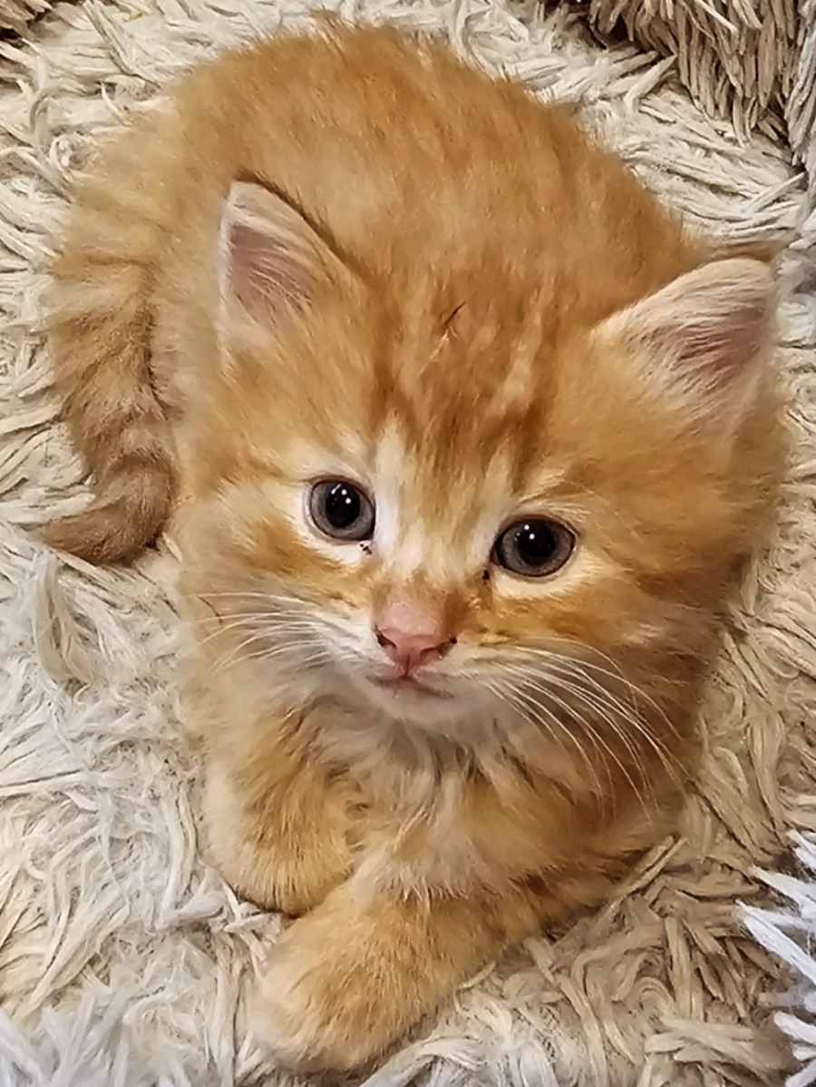 Hello there, I'm Harlow, and I'm ready to bring a lifetime of purrs and play into your home! I'm a gorgeous long-haired female kitten with a heart full of love and a personality as fluffy as my coat.