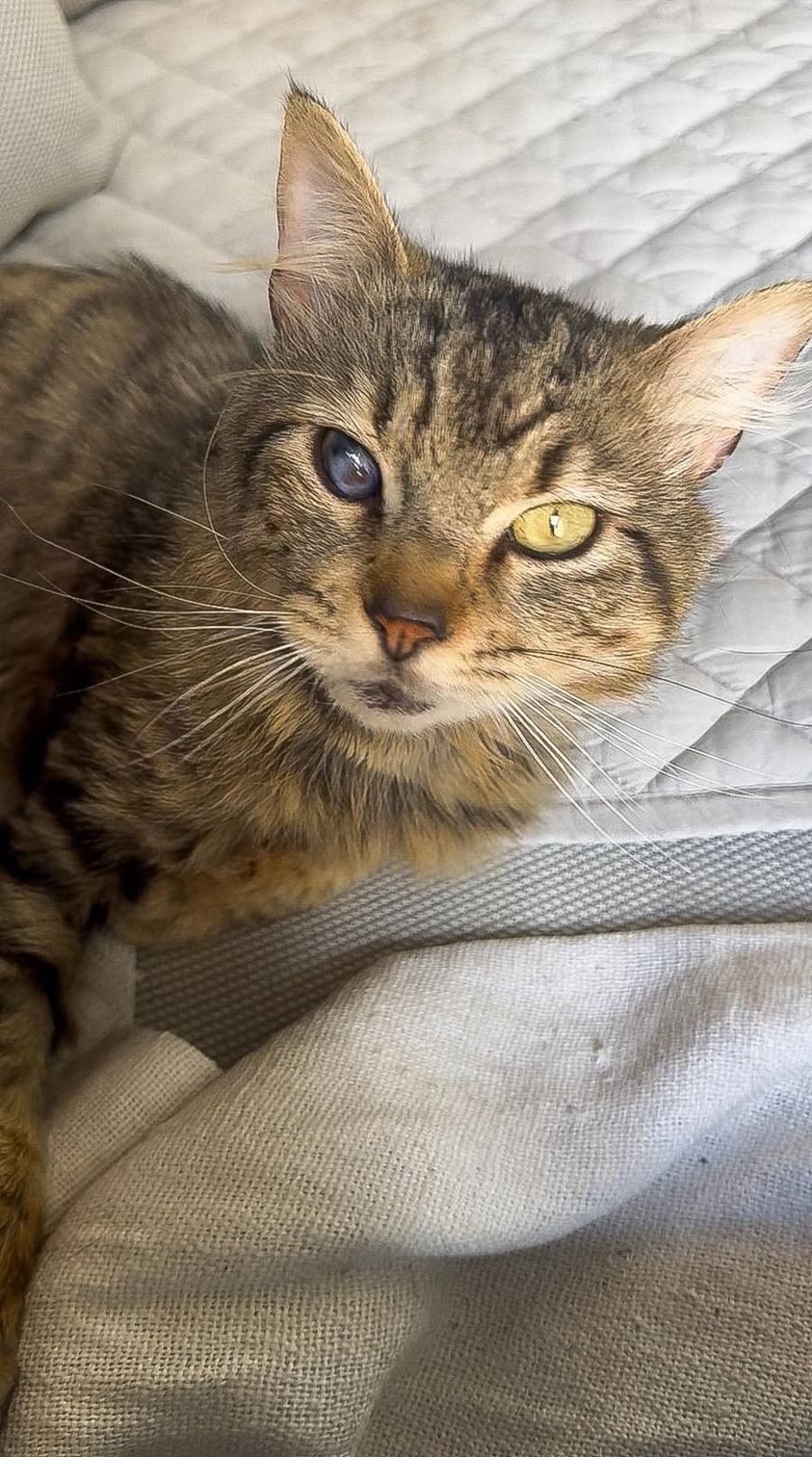 Despite everything he has been through, Mikey is the epitome of love. He is a quiet, gentle boy who enjoys the simple things — especially finding a warm sunny spot to curl up in. His personality is soft, calm, and incredibly easy-going.