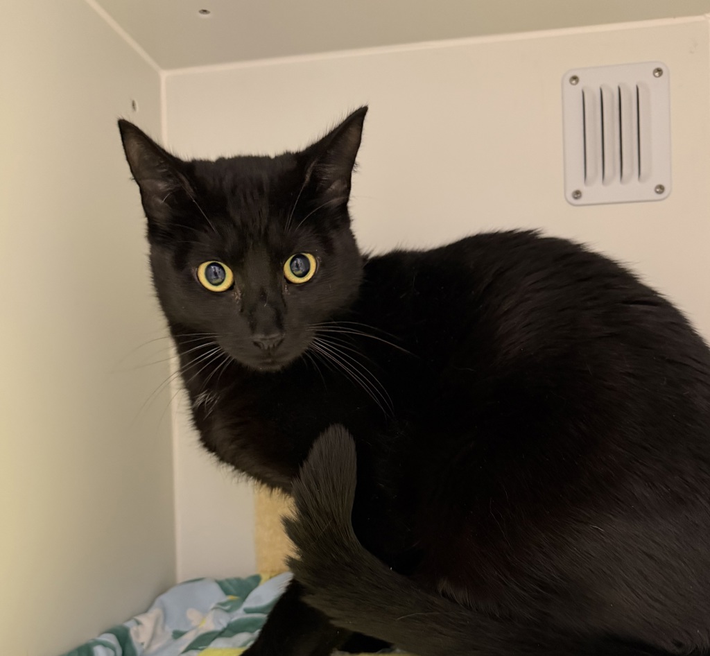 Simba is a striking young boy with glossy black fur and a personality as bright as his name. A true little "house panther," Simba is confident, outgoing, and absolutely loves meeting new people. He's a social butterfly with a friendly, easygoing nature that makes him a wonderful match for all kinds of families.