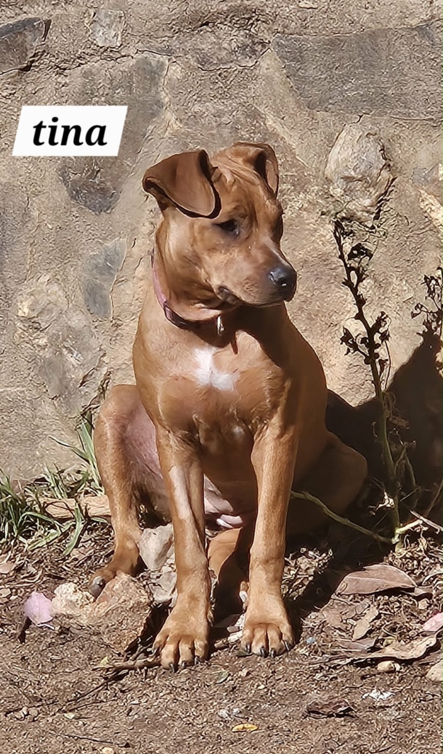 Tina is roughly 7mths old and a petite mix breed.