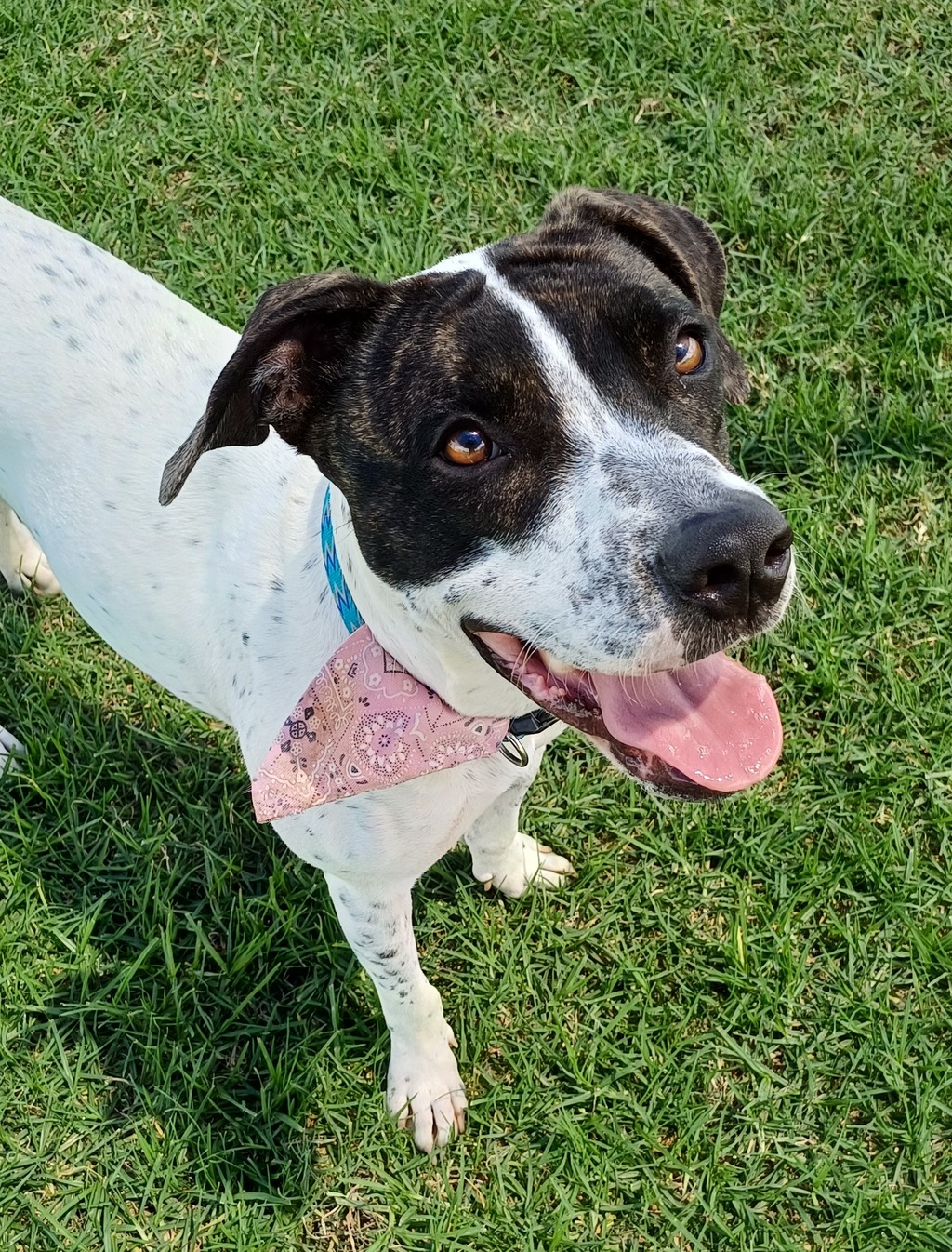 Valerie is super food motivated and eager to please, which makes training fun. She knows "sit" and is learning "lie down." She'll do best in a quiet home and would love a calm, social dog friend to help her feel confident.