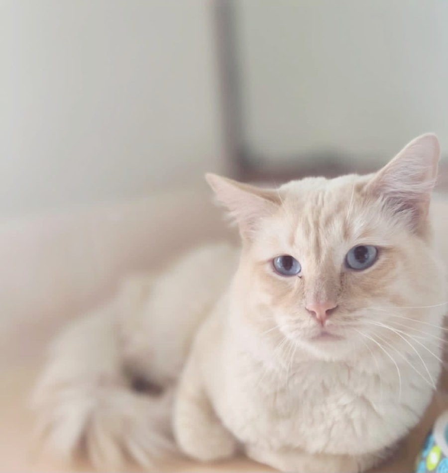 This sweet, soft-hearted boy loves calm, quiet homes. He gets along wonderfully with other cats and spends his days snoozing in hidden cosy spots.