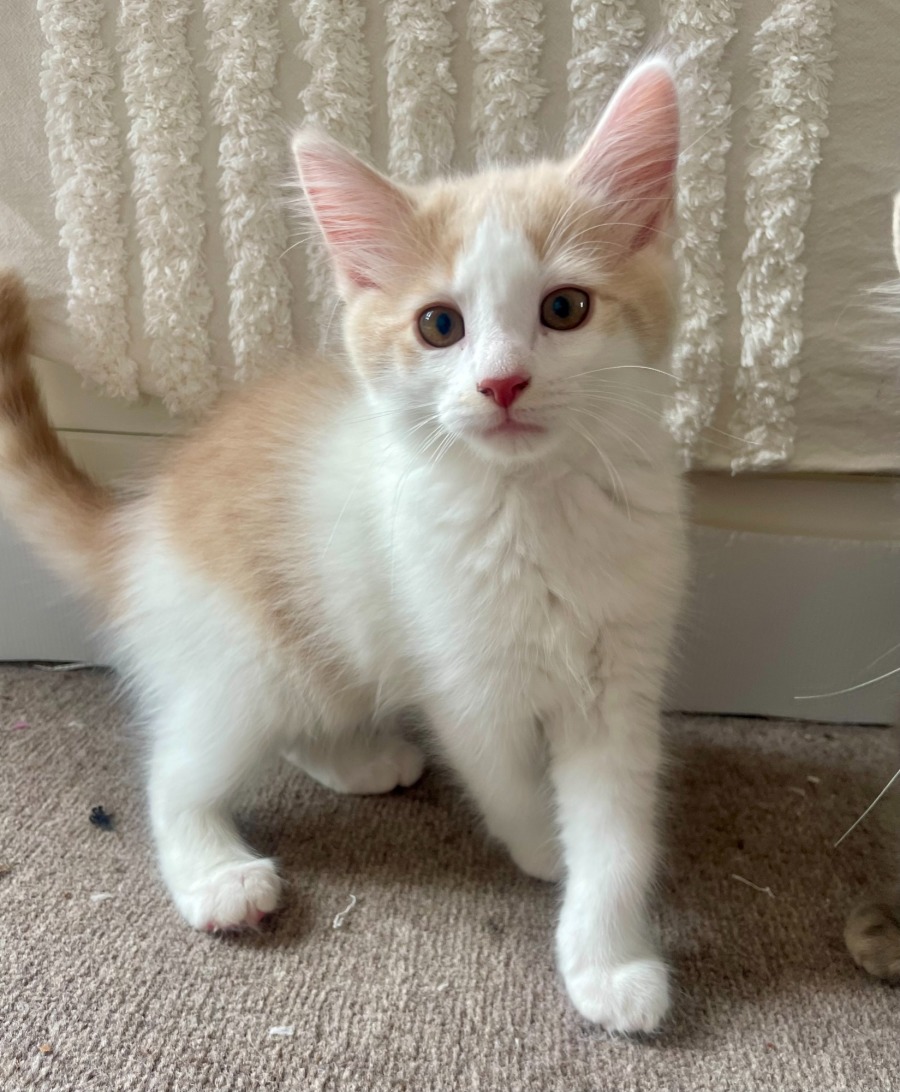 Toffee is looking for a home that appreciates a chatty, affectionate kitten and ideally offers a familiar furry face for comfort.