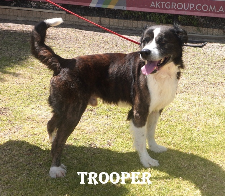 Trooper is a mature Border Collie mix with a story of resilience and hope.