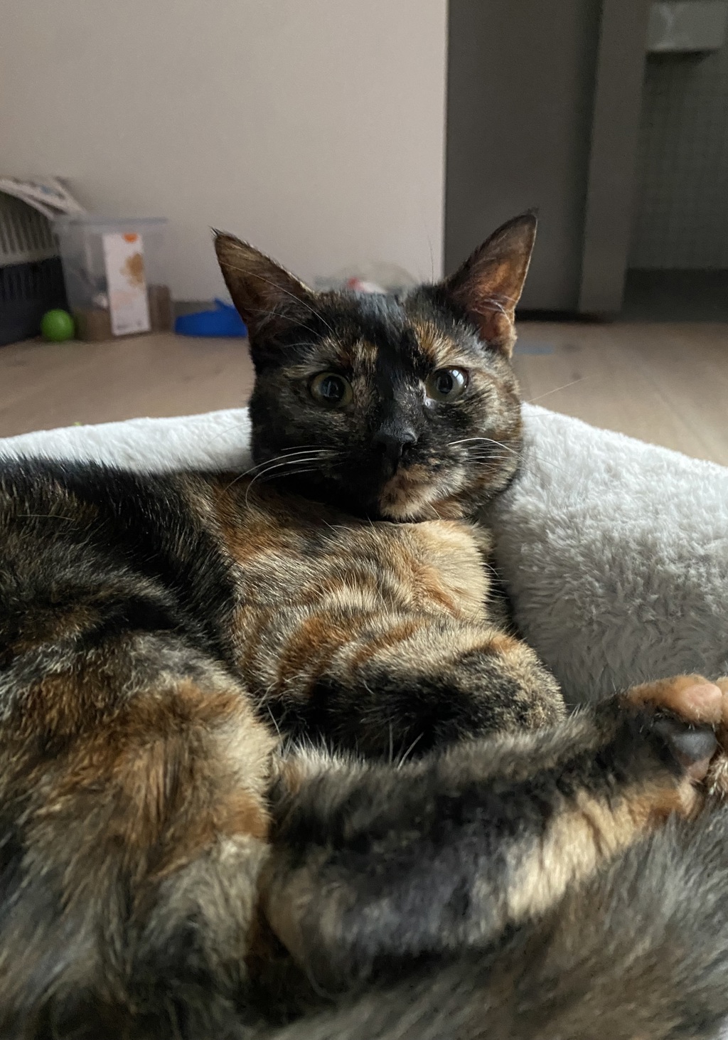 Chai loves being with people and would like to spend time inside with you. Chai is very playful and loves playing with toys. She needs lots of things to do during the day when you are not home. Some toys to play with, tunnels to run through, and cat playgrounds to explore would make her day. Chai was in a foster home for a couple of months to manage her stomach sensitivities. She is currently on a special diet to help with this. In the foster home, Chai was very friendly with the resident dog so might be okay living with a friendly canine companion. Chai's hobbies include playing, eating, sleeping and cuddling. She is looking for someone who enjoys quiet time and togetherness. Could that someone be you?