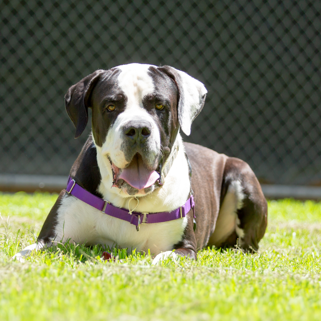 Despite his enormous size, Geronimo is absolutely convinced he's a lap dog. He lives for cuddles, leans, pats, and being as close to his humans as possible. When he's not trying to sit on you, you'll find him splashing in water - honestly, if it holds even a teaspoon of liquid, Geronimo will try to jump in it. A home with access to plenty of water play is a must for this goofy gentleman.