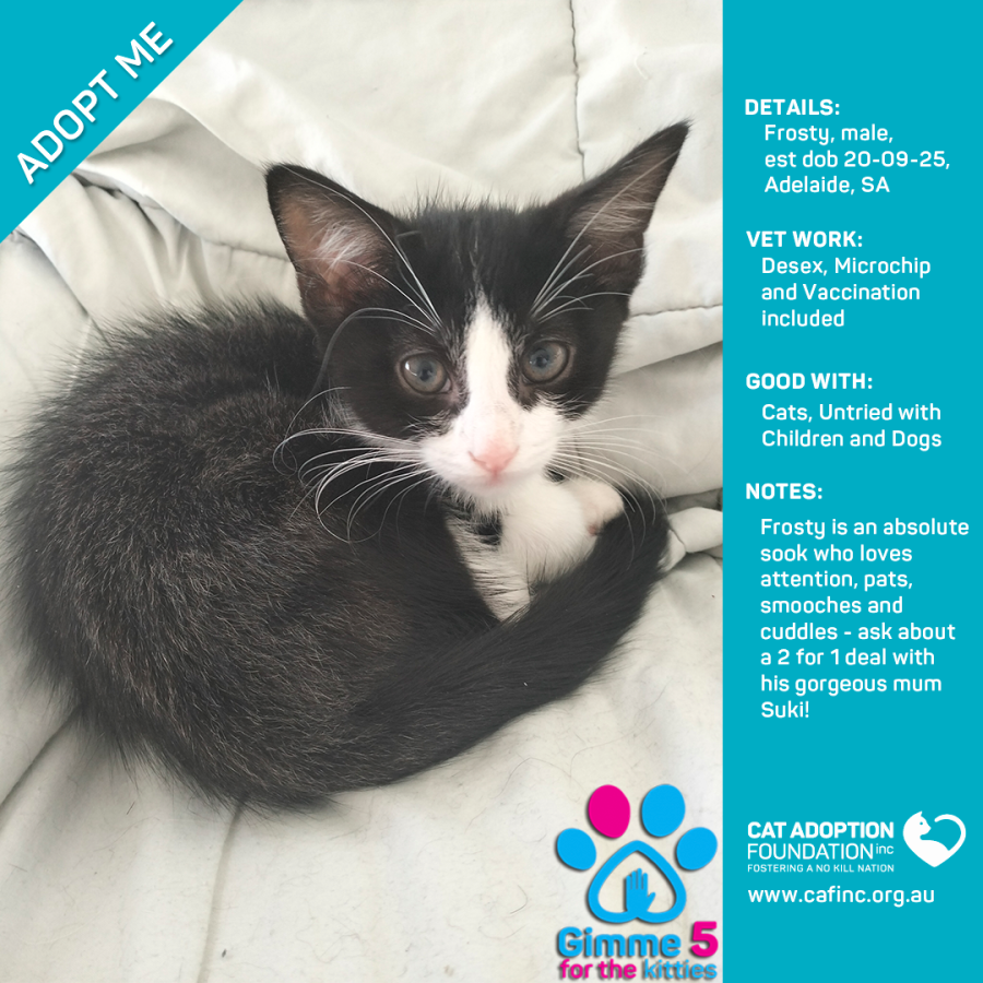 To adopt this kitty please contact Sayla on 0422 652 837 or email us at info@cafinc.org.au.