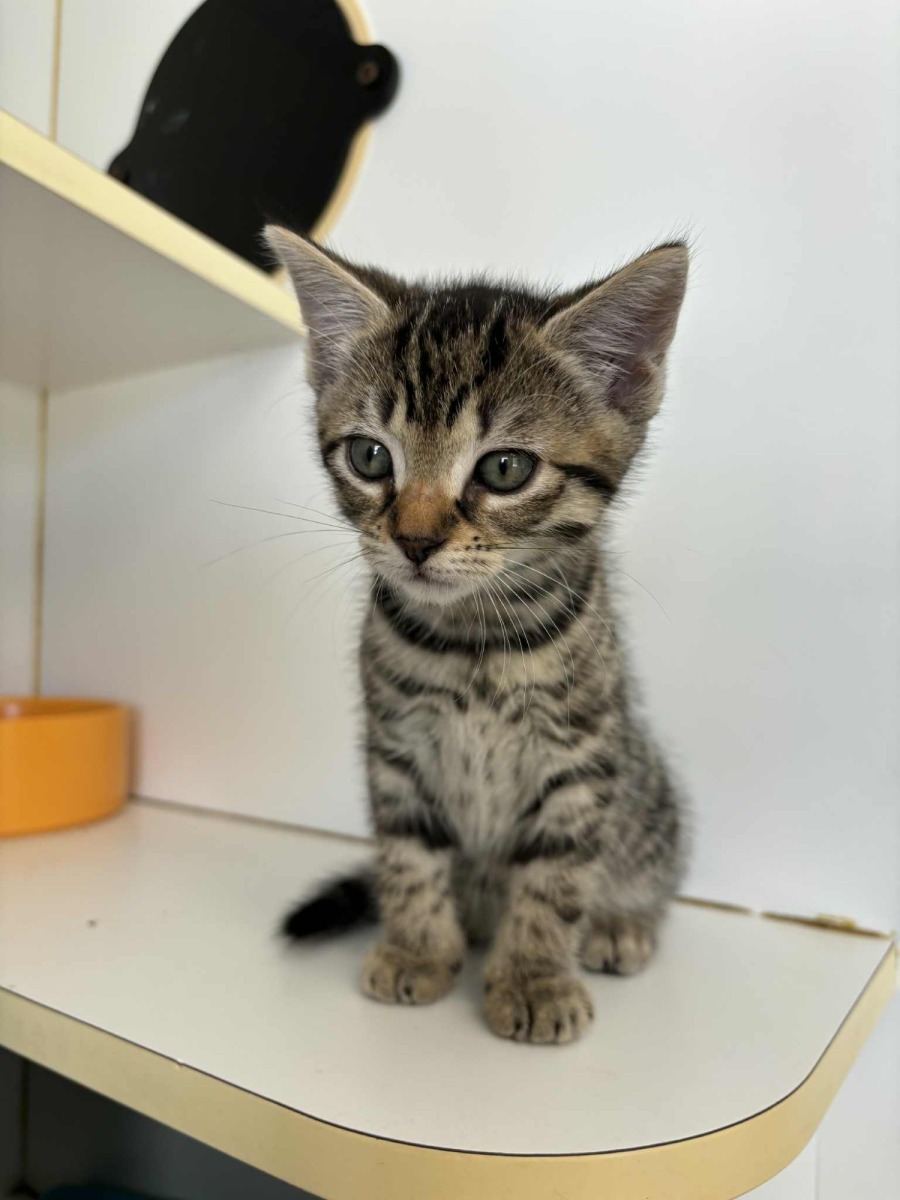 He enjoys playing, cuddling and exploring when he isn't too busy hanging out with his siblings and human friends for pats and cuddles.