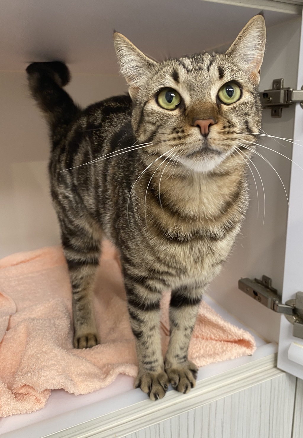 If you're looking for a cat with personality plus, Minke has it in spades. This confident, outgoing girl walks into every room like she already owns the lease - and honestly, she probably should. She's chatty, expressive and never shy about telling you exactly how her day is going (usually great, thanks for asking).