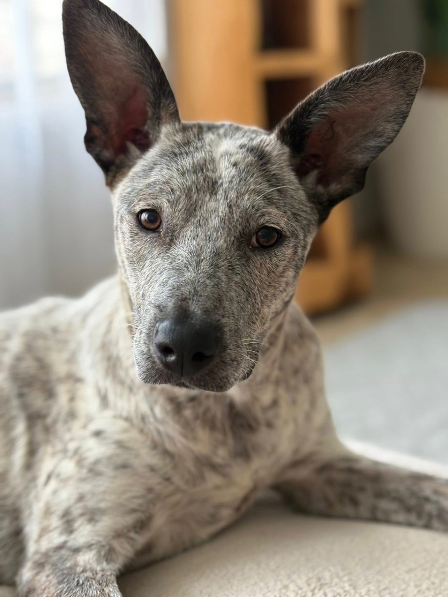 Trixie is a sweet and affectionate girl who adores cuddles and attention, exceptionally well behaved. She currently lives with two human foster parents and two doggy siblings. She is very social and thrives on the company of other dogs and people, the more the merrier.
