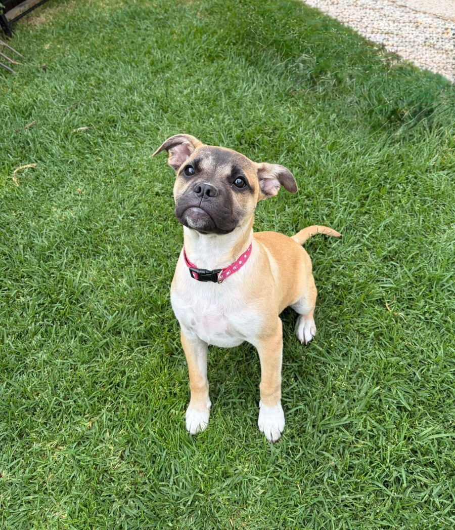 Meet Sheba — the tiny tornado of joy with a heart full of sunshine! This sweet 14-week-old Mastiff mix is all cheeky charm, wiggly excitement, and melt-into-your-arms cuddles. She’s the perfect blend of fun-loving playmate and soft, snuggly sweetheart.