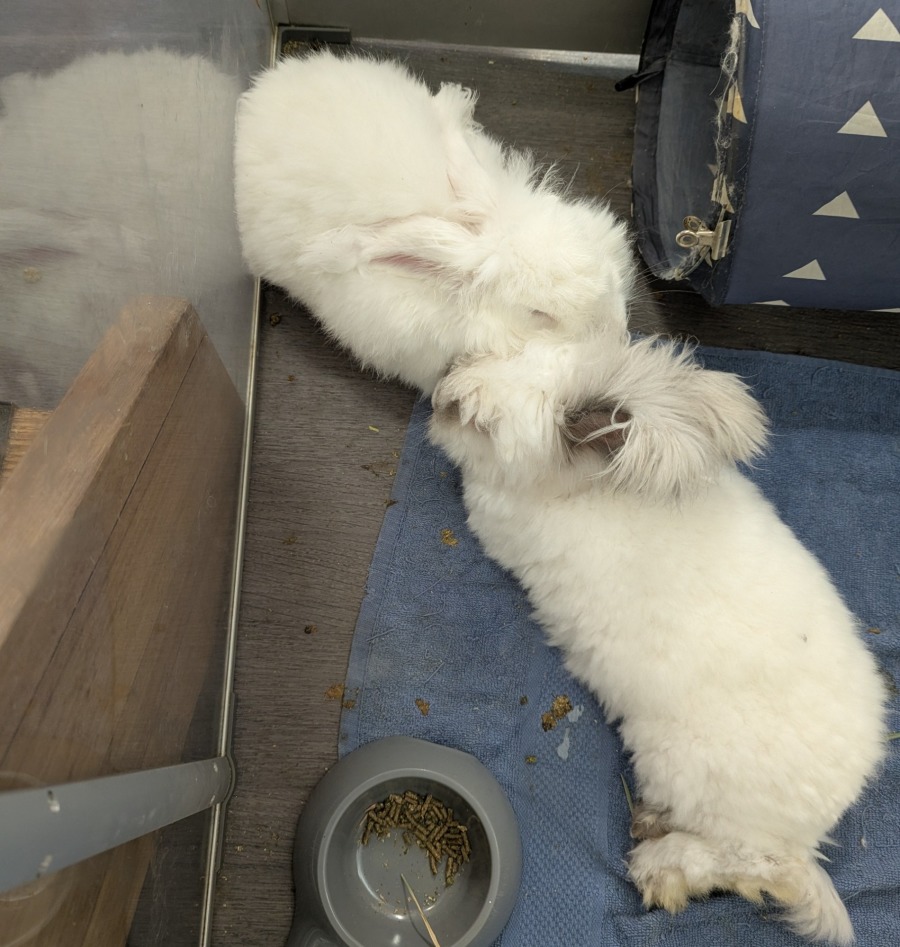 Powderpuff and Beethoven are stunning English Angoras with beautiful blue eyes and big personalities. These two gorgeous buns came from a difficult situation. They need a loving indoor home and they come with a grooming commitment to keep their fur manageable.