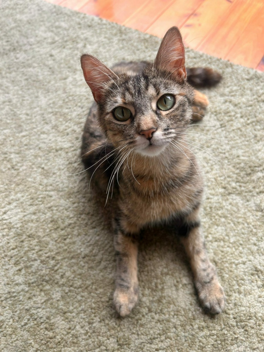 Meet Eloise, a delightful young cat who has transitioned beautifully from her role as a dedicated mother to a loving and affectionate companion. Eloise is a soulful feline whose nurturing spirit remains evident in her interactions with people.