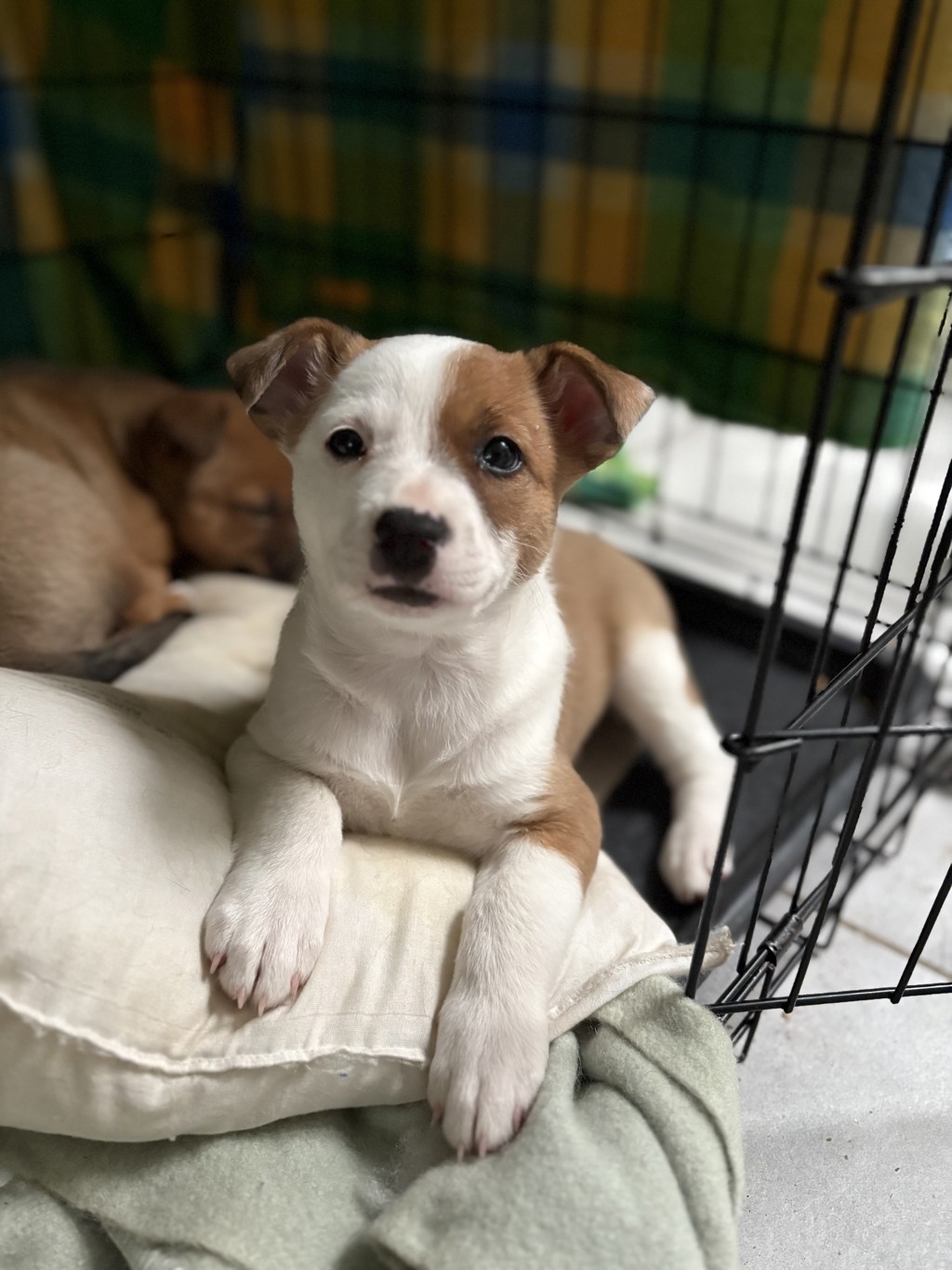 Beatrix is the largest of the litter, the first to try barking, and the most rambunctious. She loves to play and has a real go-getter attitude toward life, but she also has a sensitive side and looks after the smaller pups to keep them warm. These pups are full of charm and character - from cheeky mischief-makers to gentle cuddle bugs - and will all make loyal, loving companions for the right active family.