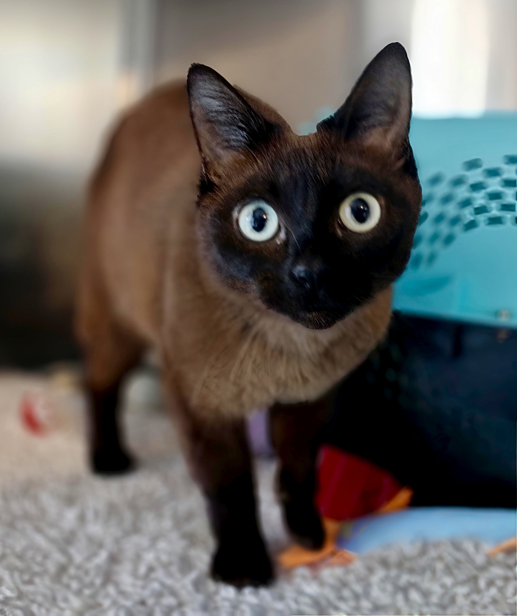 Meet Miss Evie! This stunning chocolate-coated Burmese-type beauty is a busy girl with a lovely, outgoing nature. Her big, wide eyes-reminiscent of a house possum-give her an irresistibly charming look. Miss Evie is tidy and well-mannered, making her a delightful addition to any home. She's full of personality and loves to be involved in whatever's happening around her.