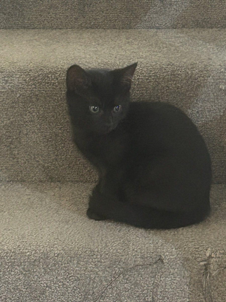 With his shiny black fur and bright, curious eyes, Midnight is a stunning little kitten who's sure to capture your heart.