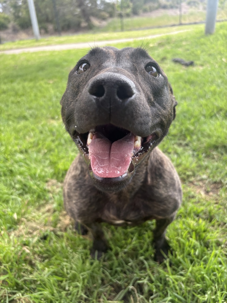 Ayla is a sweet female English Staffy x with a big heart and an even bigger love for her humans. This gorgeous girl is searching for her forever home and that special person or family who will adore her just as much as she adores them. Ayla is the definition of a Velcro dog - she loves being close, soaking up affection, and following her favourite humans everywhere. If you're after a loyal cuddler who'll happily curl up beside you (or on you!), Ayla is your girl.
