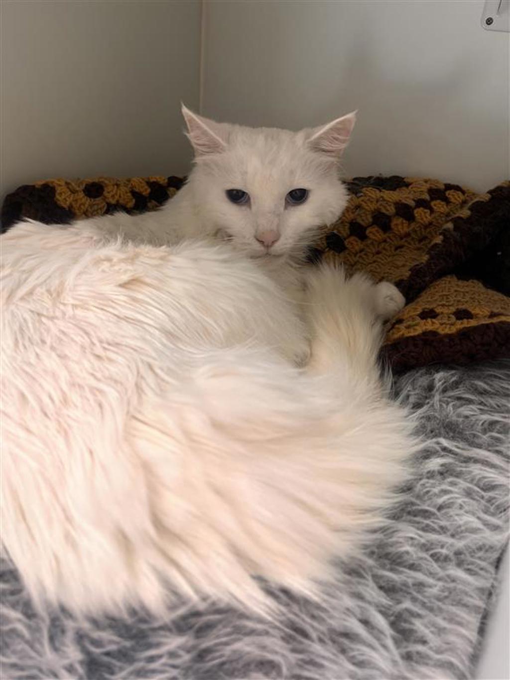 Mister absolutely loves affection - give him a gentle pat and he'll start purring instantly. He's strictly indoors due to being deaf, but he doesn't mind one bit. Mister is more than happy to follow you around the house, keeping you company with his soft, sweet presence.