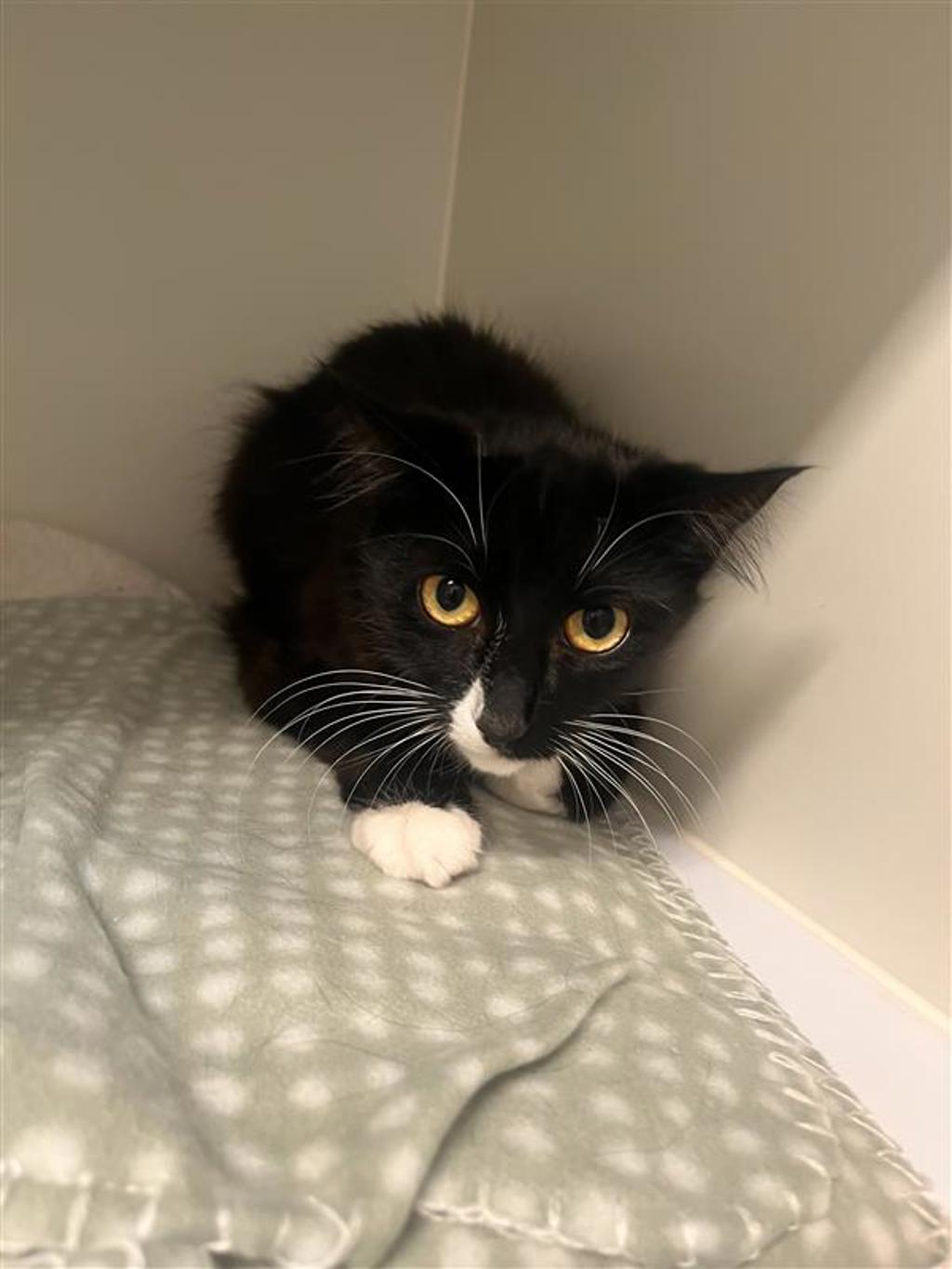 Meet Norella, a shy and gentle young cat looking for a calm, loving home. She may not thrive around very young children, but she will flourish in a home with older kids or adults who can provide patience, understanding, and plenty of love.