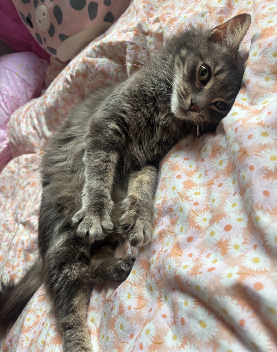 This beautiful girl has a calm, chilled personality. No mischief, no chaos — just peaceful naps in sunny spots, quiet company, and soft purrs. She’s confident, people-oriented, and loves being part of whatever her humans are doing… as long as it doesn’t involve sharing her home with other cats.