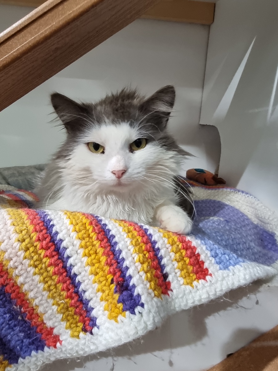 He may need a little time to warm up. He's on a journey of learning to love and trust again. When he lets you into his world, you'll realise that his heart is as big as his fluffy exterior.
