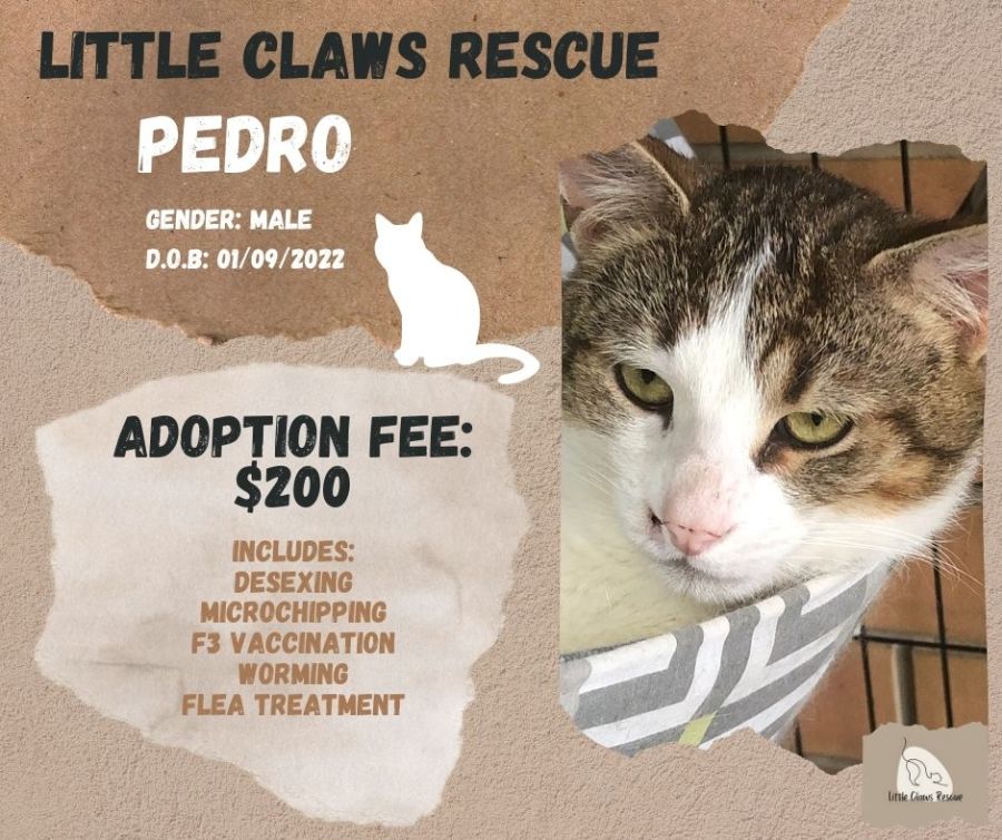If you're looking for a feline friend who can bring a touch of serenity to your home, Pedro is the perfect match. His loving presence and fondness for food make him an endearing addition to any household, ready to shower you with affection and companionship.