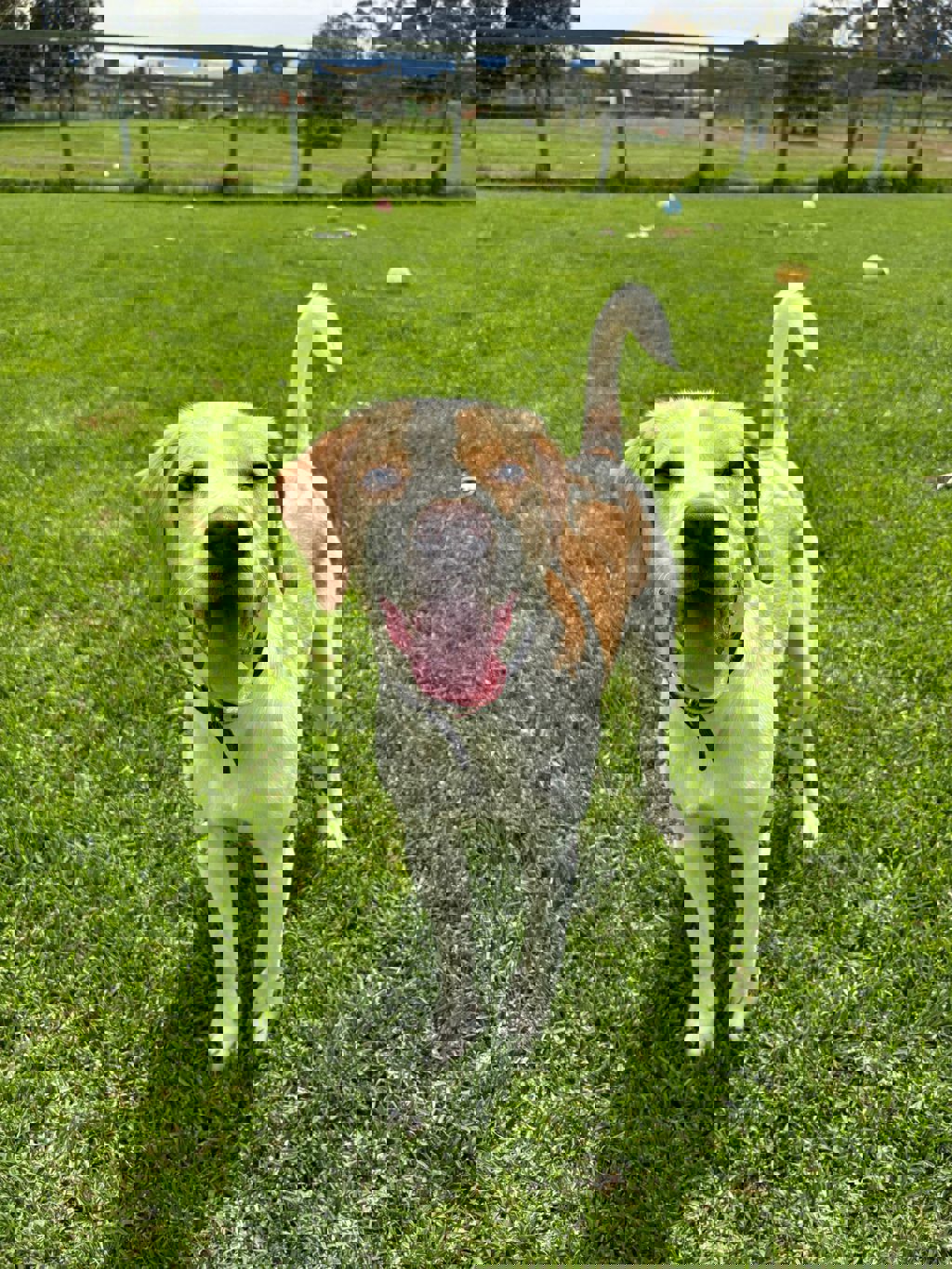 This goofy, boisterous boy is all about fun - playing, sniffing, exploring, and then playing some more. But behind all that enthusiastic zooming is a sweet pup who simply wants attention from his people or a canine buddy. In fact, Ravioli must have a dog companion to keep him company when his humans are out, and he'll thrive best with plenty of space to roam, sniff, and let those classic hound instincts shine.