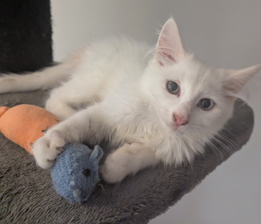 Meet Shiro, a striking kitten with different coloured eyes and pure white fur.