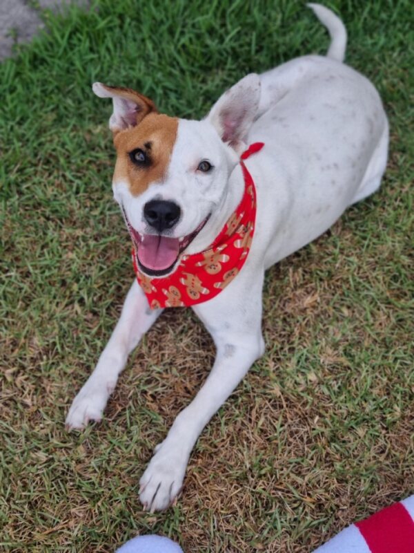 Hi, Remus here, a charming Staffordshire Bull Terrier cross Australian Cattle Dog, with a heart of gold and a bottomless stomach! I'm a handsome young man who is still finding his paws in the world. I can be shy at first, however quickly warm up to those who approach me with patience and kindness.
